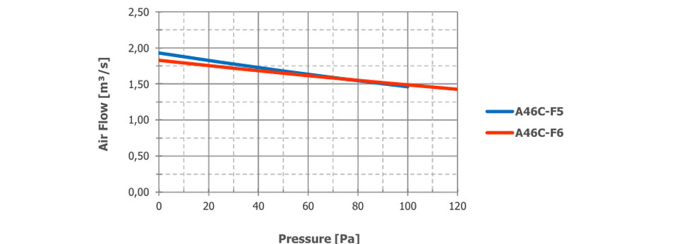 Der Luftstrom und der Schalldruckpegel (SPL) werden für den freien Ausblasbetrieb mit Einlass- und Auslassschutzgittern angegeben. Die SPL-Werte bei 1 m wurden seitlich am Ventilator gemessen. Die SPL-Werte bei 2 m wurden gemäß dem quadratischen Entfernungsgesetz berechnet. Die angegebenen Werte können je nach angeforderten Optionen und Konfigurationen variieren.